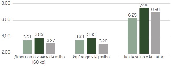 Figura 1. Relação de troca com o milho, para o pecuarista, avicultor e suinocultor.